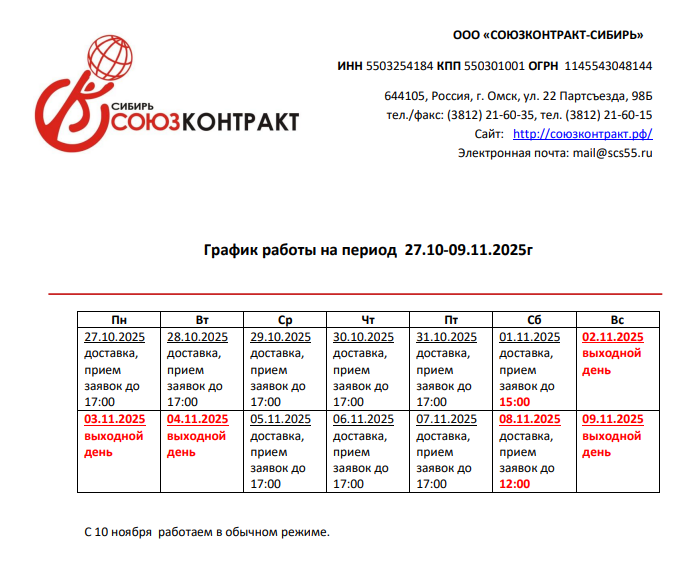 Уважаемые клиенты, просим вас обратить внимание на наш график работы праздничные дни. Всю подробную информацию вы можете получить у наших менеджеров или позвонить нам в офис.